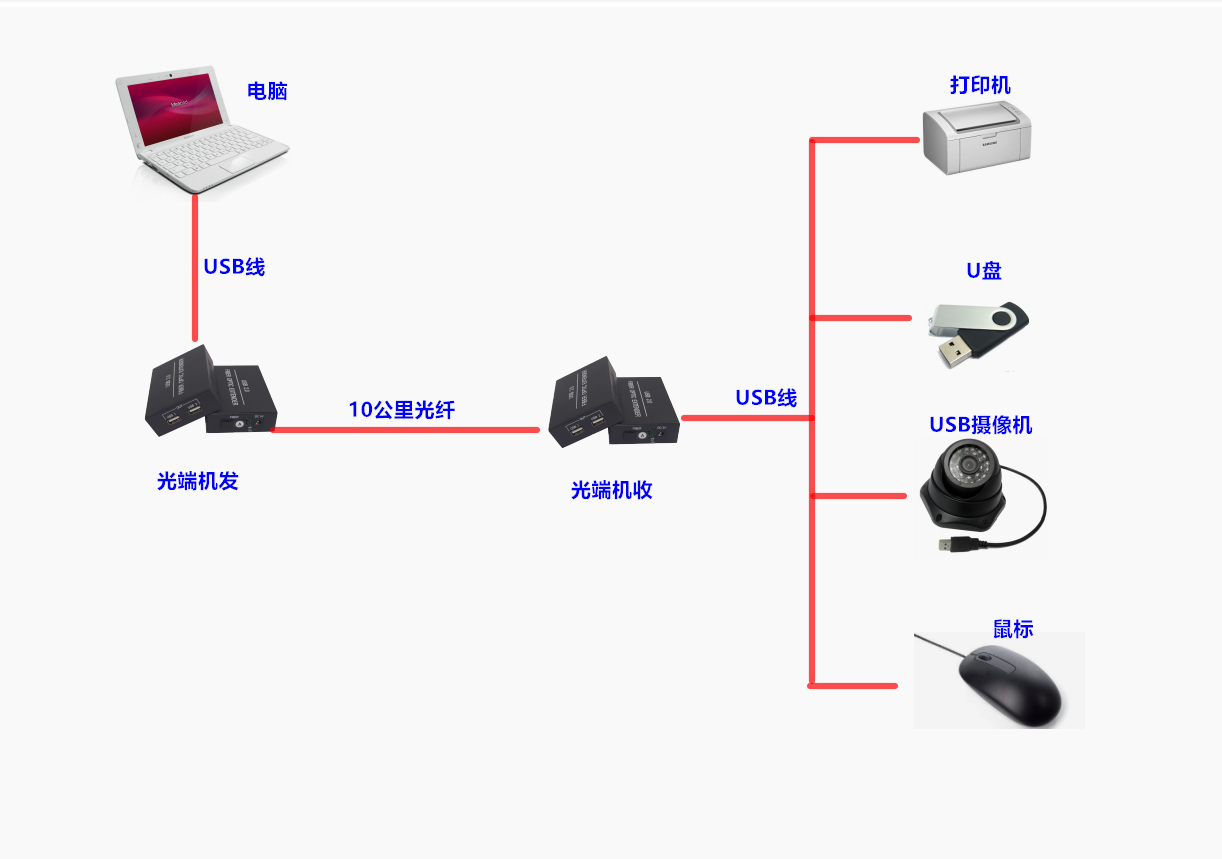 産品特點 1,兼容USB2.0協議,支持USB接口攝像機(jī)、打印機(jī)、U盤、鍵鼠等設備(bèi)。 2,自動(dòng)識别高速High-speed(25Mbps~480Mbps)、全速Full-speed(500Kbps~12Mbps)、低速Low-speed(10Kbps~1.5Mbps)USB設備(bèi)。 3,光纖傳(chuán)輸距離10KM單(dān)模單(dān)纖 4,單(dān)芯光纖傳(chuán)輸,無需驅動、兼容任何系統,即插即用。